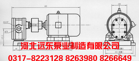 1. 2CY4.2齒輪泵流(liú)量:4.2m3/h,吸入真空高度(dù)3米,口徑G1 1/4",效率59%,壓力(lì)0.6Mpa,配用電機:4KW-4,壓力2.5Mpa,配(pei)♉用電機5.5KW-4 2.安裝尺寸(cun)圖: |