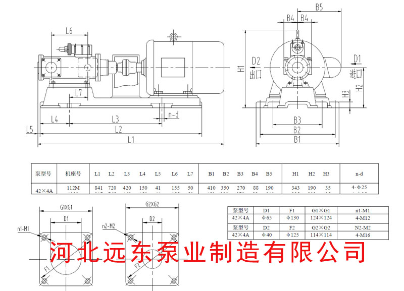 | 3GR42*4AW21三螺杆泵配112M底(di)座安裝尺寸圖(tu)-遠東泵業 |