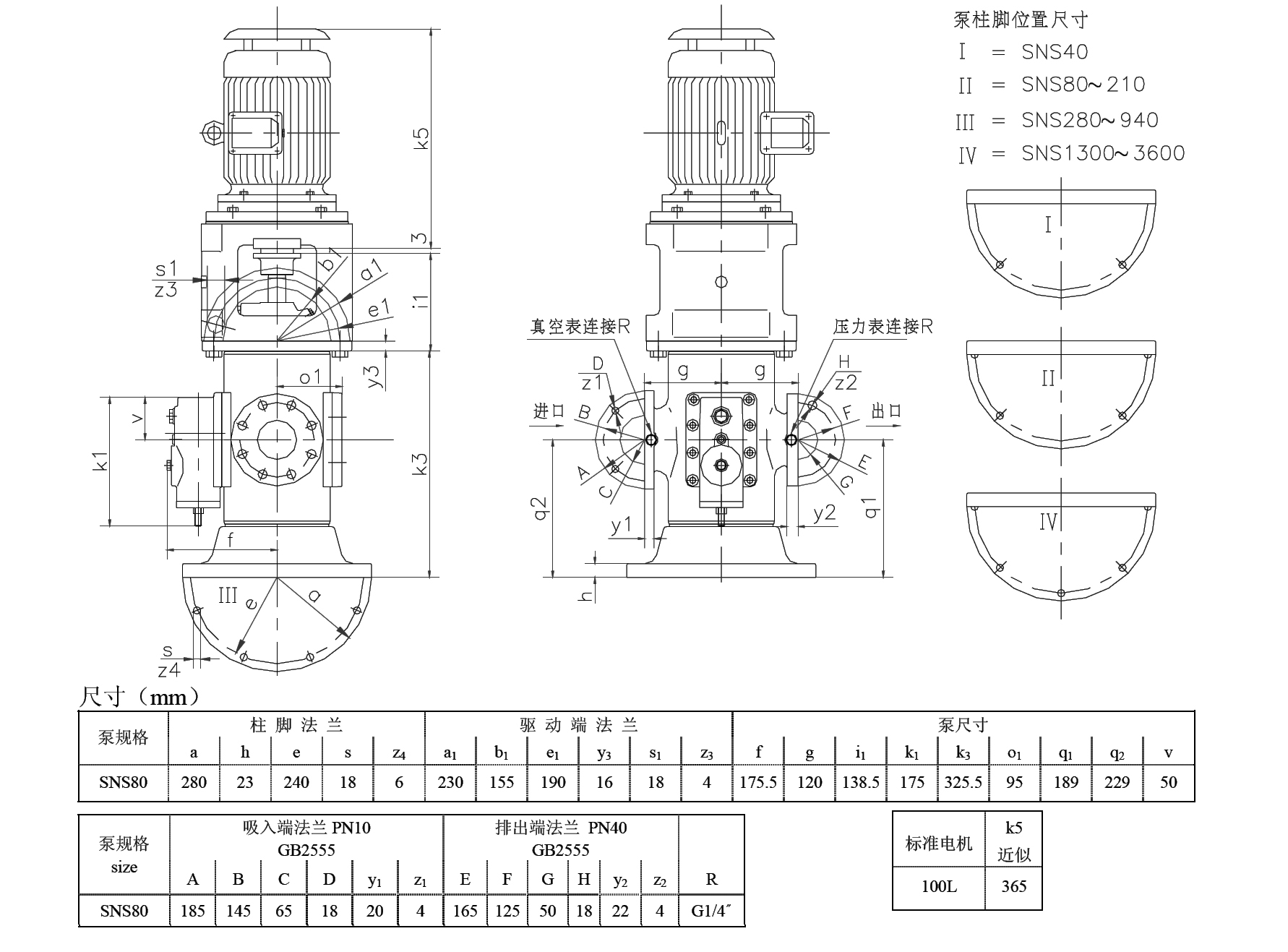 SNS80R36U12.1W21立(li)式三螺杆泵尺(chi)寸圖 ,該泵配2.2kw電(diàn)機,電機轉速為(wei)1450rpm,該泵可以做機(ji)床潤滑油泵,旋(xuan)轉設備潤滑油(you)泵.