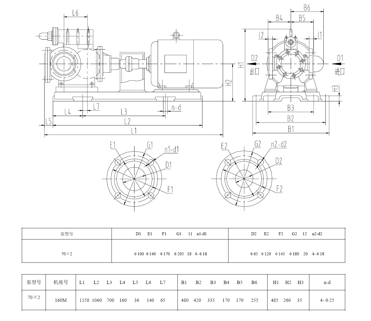 3GR70*2W2三螺(luó)杆泵配7.5KW-4電(dian)機尺寸圖(tú),該三螺杆(gan)泵流量24m3/h,壓(yā)力0.6Mpa,吸入🚶真(zhēn)空高度💜4.5米(mi),進口100米,出(chu)口65米.